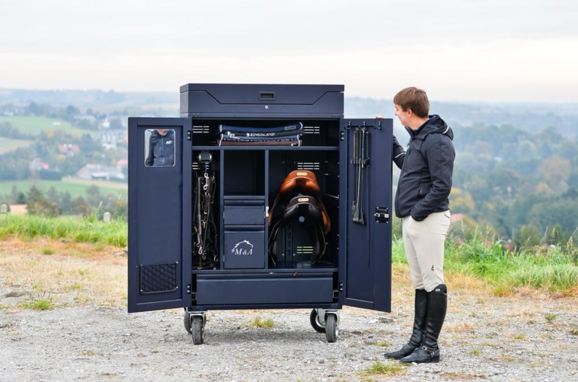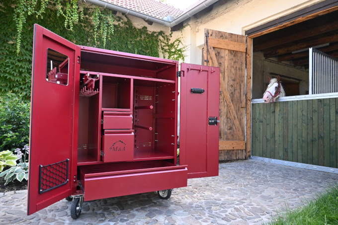 Paka SPORT M&A to imponująca wymiarami i funkcjonalnością skrzynia na dwa siodła. Układem zbliżona do paki Komfort z dodatkowym górnym segmentem na ekwipunek większych gabarytów jak derki czy garderoba jeźdzca. Bardzo przydatną funkcją jest możliwość zamontowania wieszaka na siodło na zewnętrznej ścianie paki. Przestrzeń paki możemy dodatkowo powiększyć o nadstawkę.